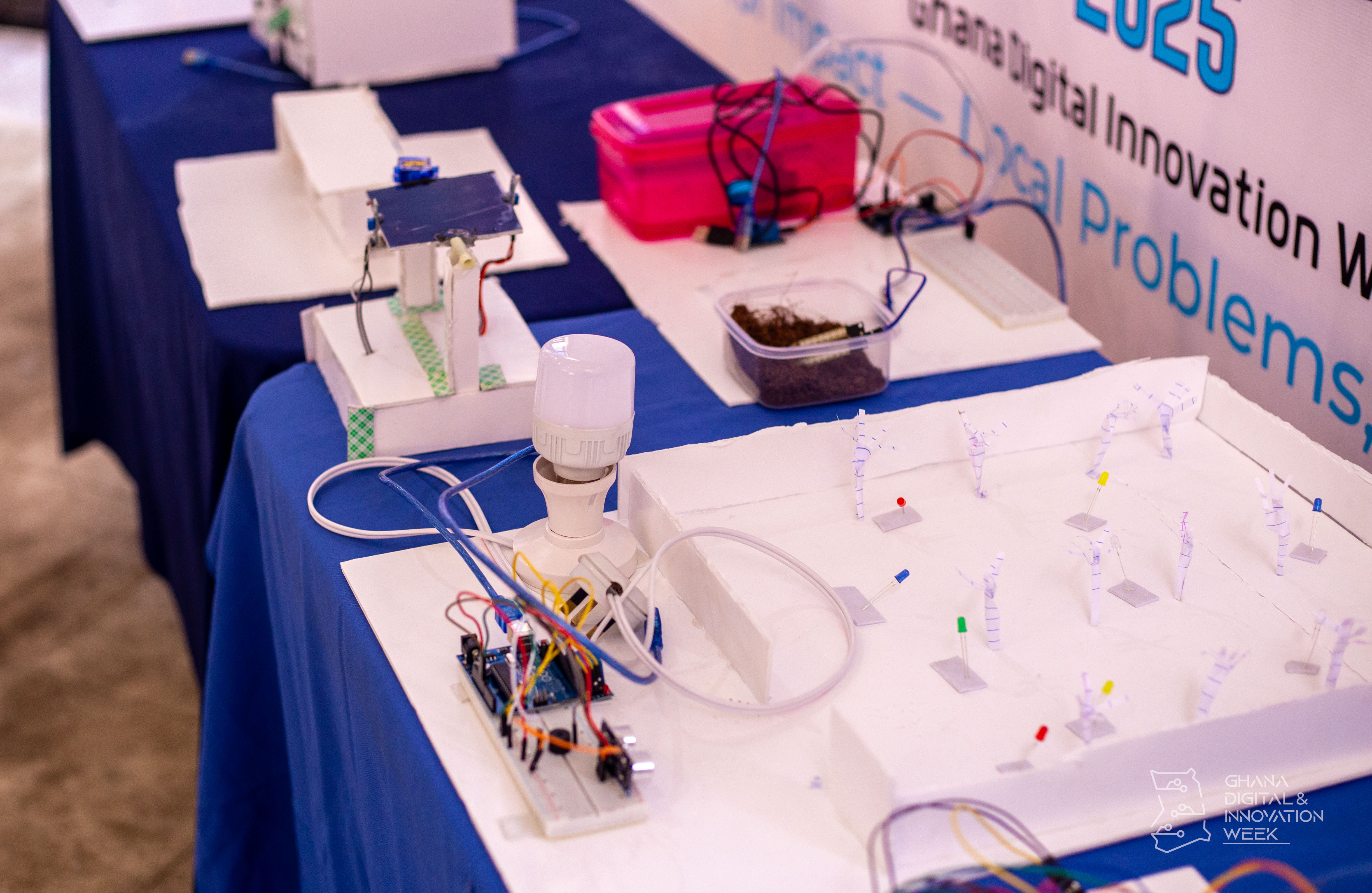 Using the STEMAIDE Kit, which includes sensors, microcontrollers, LEDs, buzzers, and other simple components, eight teams had only one hour to build. The atmosphere at the Accra International Conference Centre was filled with excitement, focus, and teamwork. As participants coded, tested, and adjusted their projects, visitors from across the venue stopped by to see the creativity taking shape.